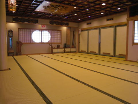 別名、多目的ホール「華山殿」は平成13年に皆様のご協力により完成しました。 格天井には各家の家紋を施し、法事や勉強会など様々な行事に使用されています。
